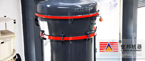 磨(mo)粉(fen)(fen)(fen)機(ji)(ji)整機(ji)(ji)工(gong)作過(guo)程(粉(fen)(fen)(fen)磨(mo)物(wu)(wu)料(liao)過(guo)程):大(da)塊狀(zhuang)物(wu)(wu)料(liao)經顎式破(po)碎機(ji)(ji)破(po)碎到所(suo)需粒(li)度后,由(you)提升機(ji)(ji)將(jiang)物(wu)(wu)料(liao)送儲(chu)料(liao)斗(dou),再(zai)經振動(dong)(dong)給料(liao)機(ji)(ji)將(jiang)物(wu)(wu)料(liao)均勻定量連續地(di)送入主(zhu)機(ji)(ji)磨(mo)室(shi)內進(jin)行(xing)研磨(mo),粉(fen)(fen)(fen)磨(mo)后的粉(fen)(fen)(fen)子被風機(ji)(ji)氣(qi)(qi)流帶走,經選(xuan)粉(fen)(fen)(fen)機(ji)(ji)進(jin)行(xing)分級,符(fu)合細度的粉(fen)(fen)(fen)子隨氣(qi)(qi)流經管道進(jin)入旋風集(ji)粉(fen)(fen)(fen)器(qi)內,進(jin)行(xing)分離收集(ji),再(zai)經出粉(fen)(fen)(fen)管排出即為(wei)成(cheng)品粉(fen)(fen)(fen)子。氣(qi)(qi)流再(zai)由(you)旋風集(ji)粉(fen)(fen)(fen)器(qi)上端回(hui)風管吸(xi)入引風機(ji)(ji)。本機(ji)(ji)整個氣(qi)(qi)流系統是密閉循(xun)環的,并(bing)且是在負壓(ya)狀(zhuang)態下循(xun)環流動(dong)(dong)的。