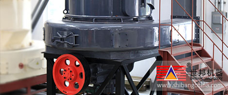 主機(ji)工作過(guo)程(cheng)是電動機(ji)通過(guo)一(yi)副三角帶(dai)輪帶(dai)動橫(heng)向傳(chuan)動軸(zhou)轉(zhuan)(zhuan)(zhuan)動,橫(heng)向傳(chuan)動軸(zhou)再通過(guo)另一(yi)端的(de)(de)錐(zhui)齒輪帶(dai)動主機(ji)主軸(zhou),主軸(zhou)的(de)(de)上(shang)端連接著磨(mo)(mo)(mo)(mo)(mo)(mo)輥(gun)(gun)(gun)吊架(jia),磨(mo)(mo)(mo)(mo)(mo)(mo)輥(gun)(gun)(gun)裝置通過(guo)橫(heng)擔軸(zhou)吊裝在(zai)磨(mo)(mo)(mo)(mo)(mo)(mo)輥(gun)(gun)(gun)吊架(jia)上(shang)并形(xing)成擺動支點,其不僅圍繞軸(zhou)回轉(zhuan)(zhuan)(zhuan),同時(shi)在(zai)離心力(li)的(de)(de)作用(yong)(yong)下磨(mo)(mo)(mo)(mo)(mo)(mo)輥(gun)(gun)(gun)沿著磨(mo)(mo)(mo)(mo)(mo)(mo)環(huan)內圓滾動,磨(mo)(mo)(mo)(mo)(mo)(mo)輥(gun)(gun)(gun)本身因摩擦作用(yong)(yong)而自轉(zhuan)(zhuan)(zhuan)。磨(mo)(mo)(mo)(mo)(mo)(mo)輥(gun)(gun)(gun)吊架(jia)下端裝有(you)(you)鏟(chan)(chan)刀(dao)(dao)(dao)架(jia),鏟(chan)(chan)刀(dao)(dao)(dao)架(jia)的(de)(de)下法蘭上(shang)裝有(you)(you)傾斜的(de)(de)鏟(chan)(chan)刀(dao)(dao)(dao),鏟(chan)(chan)刀(dao)(dao)(dao)的(de)(de)前端接近磨(mo)(mo)(mo)(mo)(mo)(mo)室襯(chen)板(ban),后端位于(yu)磨(mo)(mo)(mo)(mo)(mo)(mo)輥(gun)(gun)(gun)與磨(mo)(mo)(mo)(mo)(mo)(mo)環(huan)形(xing)成的(de)(de)楔形(xing)間(jian)隙內,鏟(chan)(chan)刀(dao)(dao)(dao)與磨(mo)(mo)(mo)(mo)(mo)(mo)輥(gun)(gun)(gun)同轉(zhuan)(zhuan)(zhuan)過(guo)程(cheng)中把物料鏟(chan)(chan)拋喂入(ru)磨(mo)(mo)(mo)(mo)(mo)(mo)輥(gun)(gun)(gun)磨(mo)(mo)(mo)(mo)(mo)(mo)環(huan)之間(jian)而被擠(ji)壓、碾碎。從(cong)磨(mo)(mo)(mo)(mo)(mo)(mo)環(huan)底(di)部進入(ru)磨(mo)(mo)(mo)(mo)(mo)(mo)腔的(de)(de)氣流將小顆(ke)粒粉料帶(dai)入(ru)選粉機(ji),由此而達到制粉目的(de)(de)。