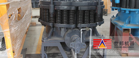 彈(dan)簧破(po)碎(sui)(sui)機(ji)工作時,電動機(ji)通過水平(ping)軸(zhou)和一對傘齒輪帶動偏心(xin)軸(zhou)套(tao)旋(xuan)轉,破(po)碎(sui)(sui)圓(yuan)錐(zhui)軸(zhou)心(xin)線(xian)在(zai)偏心(xin)軸(zhou)套(tao)的(de)(de)迫動下做旋(xuan)擺運動,使(shi)得破(po)碎(sui)(sui)壁(bi)表面時而(er)(er)靠(kao)近又(you)時而(er)(er)離開軋臼(jiu)壁(bi)的(de)(de)表面,從而(er)(er)使(shi)礦石(shi)在(zai)破(po)碎(sui)(sui)腔內不斷地受到(dao)擠壓和彎曲而(er)(er)被(bei)破(po)碎(sui)(sui)。
