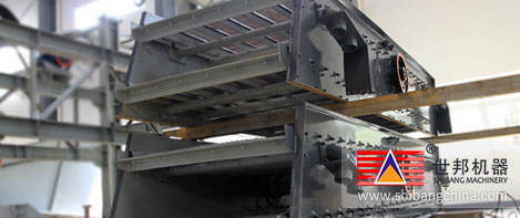 振(zhen)(zhen)篩(shai)篩(shai)機(ji)主(zhu)要有(you)篩(shai)箱(xiang)(xiang)、篩(shai)網、振(zhen)(zhen)動器(qi)、減振(zhen)(zhen)彈(dan)簧裝置(zhi)、底架(jia)等組成。采用筒體式(shi)偏心(xin)軸激振(zhen)(zhen)器(qi)及偏塊調(diao)節振(zhen)(zhen)幅,振(zhen)(zhen)動器(qi)安裝在篩(shai)箱(xiang)(xiang)側板上,并(bing)由(you)電動機(ji)通過三角皮帶帶動旋(xuan)轉(zhuan),產生(sheng)離心(xin)慣性力,迫使篩(shai)箱(xiang)(xiang)振(zhen)(zhen)動。